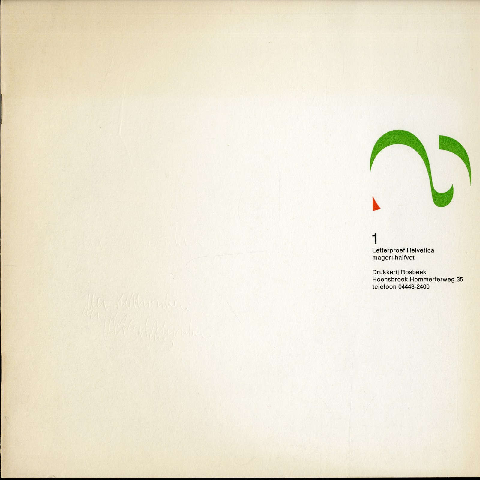 Letterproef van de beschikbare korpsen van drukkerij Rosbeek