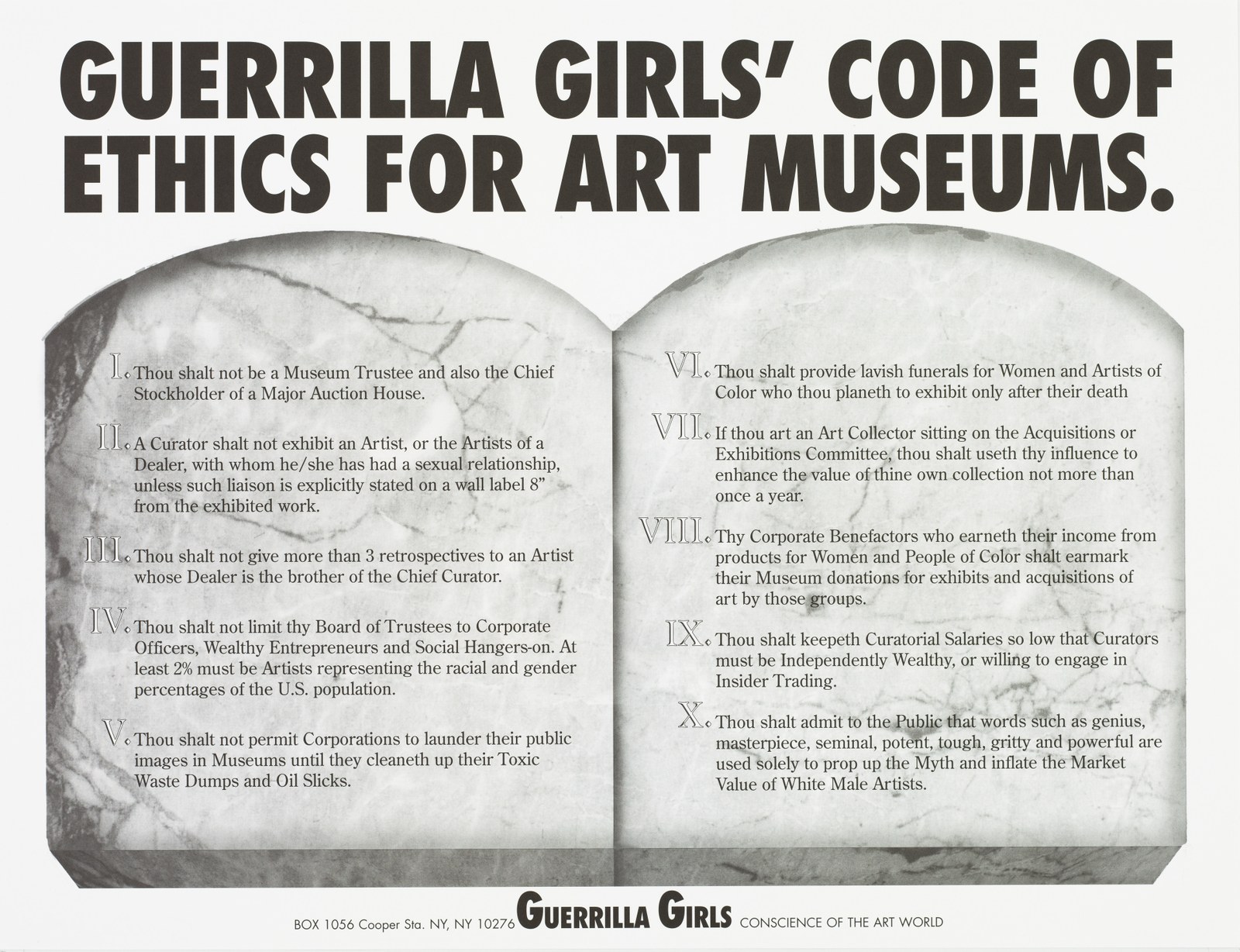 Guerrilla Girls' code of ethics for art museums