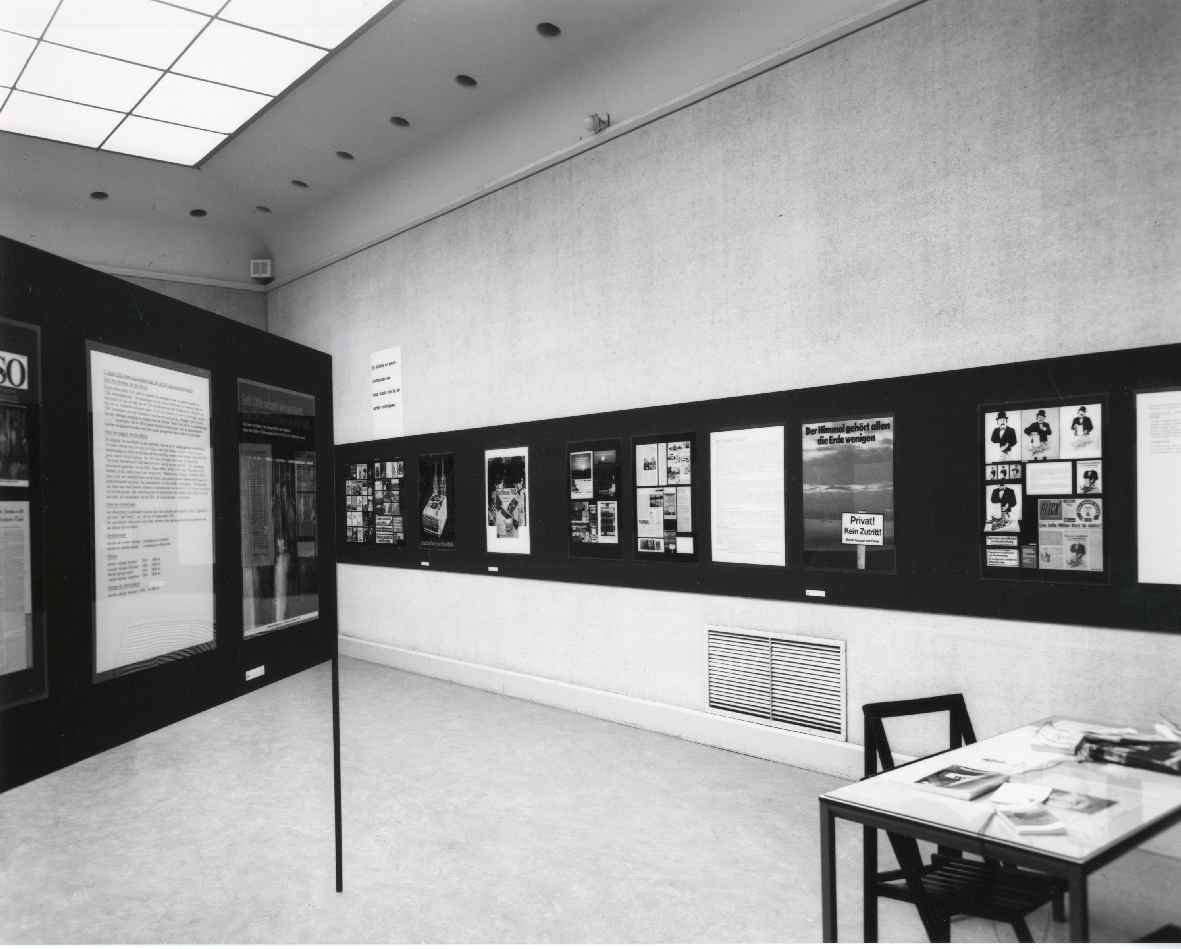 Solotentoonstelling - Opening : openbare discussie met Klaus Staeck over ontwerp en functie van de affiches - Met documentatie - Fotografie: Van den Bichelaer, Hans-Joachim Schröter, Klaus Staeck