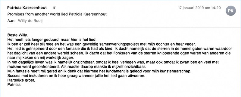 Mail from Patricia Kaersenhout