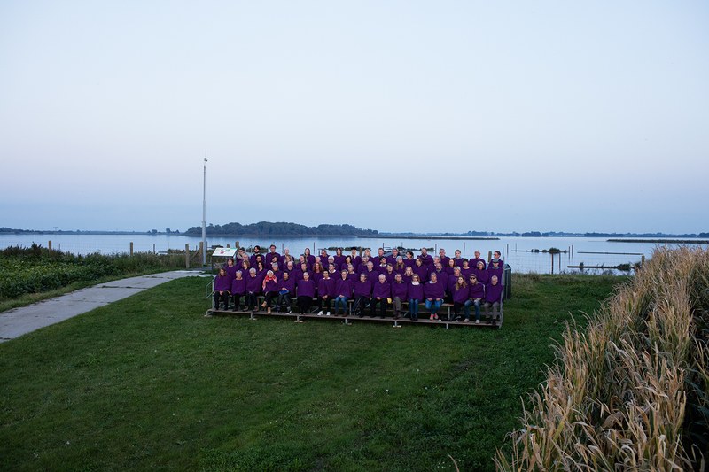 The choir performed several times in works by artist Cindy Moorman In addition to our physical presence, she mainly 'uses' us for our sound. Often a single tone that we have to sustain for minutes. We have always enjoyed working with her.