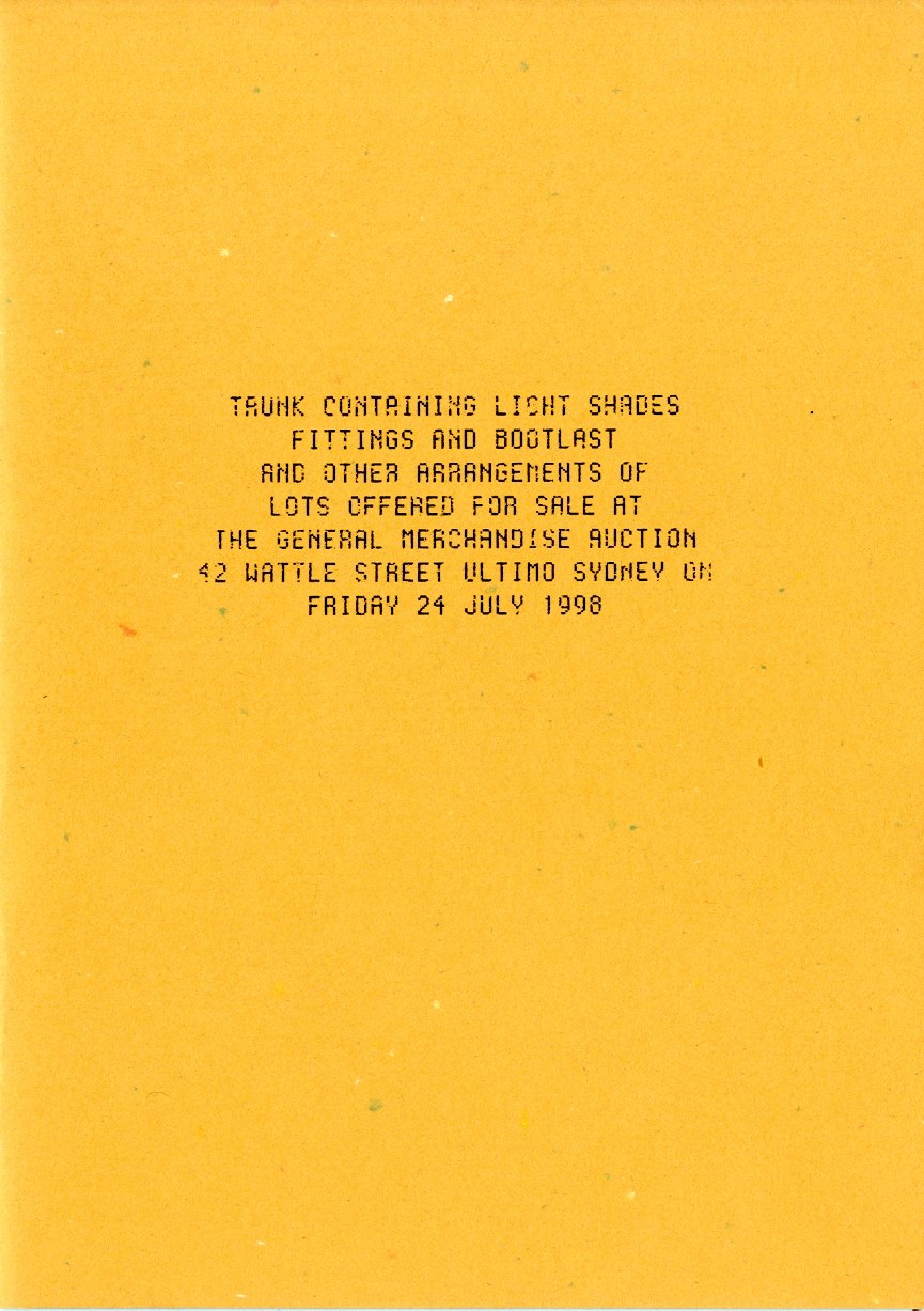 Kunstenaarsuitgave naar een concept van Pavel Büchler (Tsjechië 1952) dat bestaat uit een aantal losse vellen met tekst waarop de diverse deelprojecten worden beschreven die hij uitvoerde na een werkperiode in de Artspace te Sydney in 1998