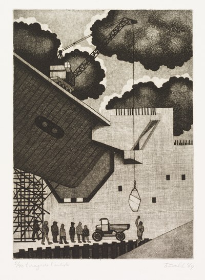 Bouwplaats met hijskraan (uit de groepsportfolio "Deltawerken")