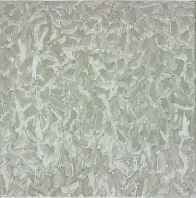 Met brede penseel in een keer in kwadraten, van links boven naar rechts onder