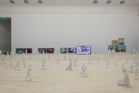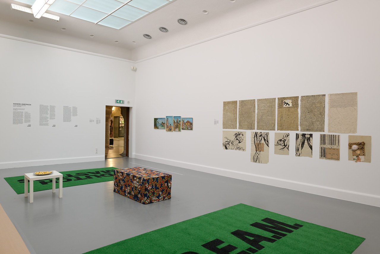 De tentoonstelling Handelsmerken is geïnspireerd op de wereldwijde handelsrelaties van Eindhoven en Noord-Brabant in de afgelopen 600 jaar. Er wordt gekeken naar de eeuwenoude strategieën van vraag en aanbod, naar de ondoorzichtigheid van eigendom en de transparantie van uitwisseling. De titel Handelsmerken is een reactie op het ondernemingsverleden van Noord-Brabant. Dit gebeurt aan de hand van drie belangrijke handelsartikelen: de valk, de sigaar en de computerchip. De valk brengt de ecologische vogeltrekroute die Noord-Europa verbindt met Afrika ten zuiden van de Sahara in kaart, maar ook de vroegmoderne Europese valkerijhandel met als epicentrum het dorp Valkenswaard. De sigaar staat symbool voor een wereld van industrialisatie, de structuren van de natiestaat en een grondstoffenketen met onder meer tabaksbladeren uit Sumatra. Ten slotte belicht de computerchip een transnationaal ondernemings-systeem van ‘menselijk kapitaal’ en de regionale marketing van de ‘Brainport’ die bestaat naast de Rotterdamse zeehaven en de luchthaven Schiphol. de tentoonstelling volgen de bezoekers een tijdlijn die meer dan zeshonderd jaar handels- en sociale relaties in kaart brengt, een uitgebreide versie van prof. Elizabeth A. Povinelli’s Symphony of Liberalisms (2015 – nu). In dit werk worden datums van lokale en mondiale betekenis in een muzikaal manuscript genoteerd. Dit nodigt toeschouwers uit om de geschiedenis niet als een aaneenschakeling van gebeurtenissen voor te stellen, maar als een veranderende en zich ontwikkelende partituur. In het Van Abbemuseum wordt de Symphony als een getijdenlijn aangebracht langs de wanden van de Oudbouw in een grafische stijl van Julie Peeters. Stap voor stap wordt het tijdsverloop in de hele tentoonstelling onderbroken door onverwachte verbanden en geografische parallellen. Eigentijdse eigendomsgeschillen onderbreken een 16de-eeuwse huiselijke setting, een Birmese burgeroorlog ontvouwt zich naast de industrialisatie van Europese arbeidsomstandigheden en langs de ontwikkeling van de bureaucratie in Singapore zie je de staccato esthetiek van street art en hiphop in Eindhoven en Helmond uit de jaren tachtig. Met patronen van herhaling en verstoring verzet de tijd- en getijdenlijn in deze tentoonstelling zich tegen de moderne Europese indeling van ruimte en tijd, die door onderzoeksadviseur Denise Ferreira da Silva wordt samengevat als de scheiding van ‘dit hier’ en ‘dat daar’ en van het ‘hier en nu’ en ‘daar en toen’. Handelsmerken is de eerste grote tentoonstelling in Europa van de kunst- en onderzoekstichting Frontier Imaginaries. Na eerdere edities in Australië, Palestina en New York komt Frontier Imaginaries nu naar het Van Abbemuseum. Alle edities van Frontier Imaginaries gaan over de ontmoetingen tussen lokale en mondiale krachten via hedendaagse kunst. Voor deze editie heeft Frontier Imaginaries het Karrabing Film Collective - inheemse kunstenaars uit het noorden van Australië - uitgenodigd een nieuw filmwerk te maken geïnspireerd op hun bezoek aan het Valkerij en Sigarenmakerij Museum in Valkenswaard. Het gaat over de geschiedenis van de valk en de plek van deze vogel in de geschiedenis en mythologie van hun Aboriginal erfgoed. Ze leggen ook verbanden met een traditionele manier van betalen in de vorm van roltabak, en verbinden zo het erfgoed van Brabant met dat van de inheemse volkeren van Australië. Het is het eerste nieuwe werk van het collectief na hun films voor het TATE in Londen en hun kunstenaarsresidentie in Centre Pompidou in Parijs. Mede opdrachtgevers zijn het Institute of Modern Art in Brisbane en PUBLICS Helsinki. Het Van Abbemuseum leent voor de tentoonstelling ook een volledige zaal met onder meer diorama’s van het Valkerij en Sigarenmakerij Museum. In het museum in Valkenswaard komt een speciale installatie van het filmwerk van het Karrabing Film Collective. In de tentoonstelling is het tien meter lange canvas Murriland! (2015-heden) van de Aboriginal kunstenaar Gordon Hookey te zien. Het wordt voor het eerst getoond in combinatie met de inspiratie voor dit werk: het 102 schilderijen tellende History of Zaire (1973-74) van Tshibumba Kanda Matulu. De enorme schildering Murriland!, waar de kunstenaar nog steeds aan werkt, is gemaakt in opdracht van Frontier Imaginaries in samenwerking met documenta 14. In Kassel was het in de zomer van 2017 een publieksfavoriet. De Nederlandse kunstenaar Farida Sedoc ontwikkelt binnen Handelsmerken haar Freetown Lounge omgeving van design, mode en kunst. Het project is gebaseerd op Sedoc’s ervaringen met de hip-hop cultuur en haar persoonlijke band met Suriname. In het bijzonder richt ze zich op De Vrede van Breda, een verdrag uit 1667 waarin zowel New York (toen nog New Amsterdam) als Suriname werden geruild. Dit vormt de basis van een interdisciplinair project dat tentoonstellingsruimten opnieuw inricht, om zo de zogenaamde neutraliteit van de ‘witte kubus’ op zijn kop te zetten. In de tentoonstelling is werk van nog meer Nederlandse kunstenaars te zien. Zo presenteert Marcel van den Berg zijn serie collages #andwealmostlost (2013-2016). Ook Footnotes to Squat / Anti-Squat (2017) van Wendelien van Oldenborgh wordt getoond. Dit werk was eerder te zien in Jerusalem Show VII met de Al Ma’mal Foundation en Frontier Imaginaries en in het Nederlandse paviljoen van de Biënnale van Venetië 2017. Daarnaast wordt een nieuwe aankoop van het Van Abbemuseum – het werk Proud Rebels van Patricia Kaersenhout – voor het eerst getoond. Handelsmerken toont ook het nieuwe werk Drawing Rights van kunstenaar en onderzoeker Rachel O’Reilly, in samenwerking met PALACE (Valle Medina en Ben Reynolds). Het volgt de koloniale land- en oceaanwetgeving tegen de achtergrond van de hedendaagse steenkoolgasindustrie in Australië. Kunstenaars van The Otolith Group hebben de opdracht voor het maken van een nieuw werk gekregen. Zij ontwikkelen een behang gebaseerd op een landmark in Noord-Braba